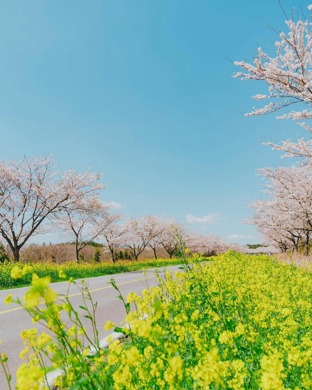 짧은 노란색 유채꽃과 키가 큰 벚꽃을 함께 찍기란 생각보다 어려워서 허리를 굽혀 셔터를 눌러야 하는데 2022년 벚꽃이 피는 계절이 아니면 볼 수 없습니다.
