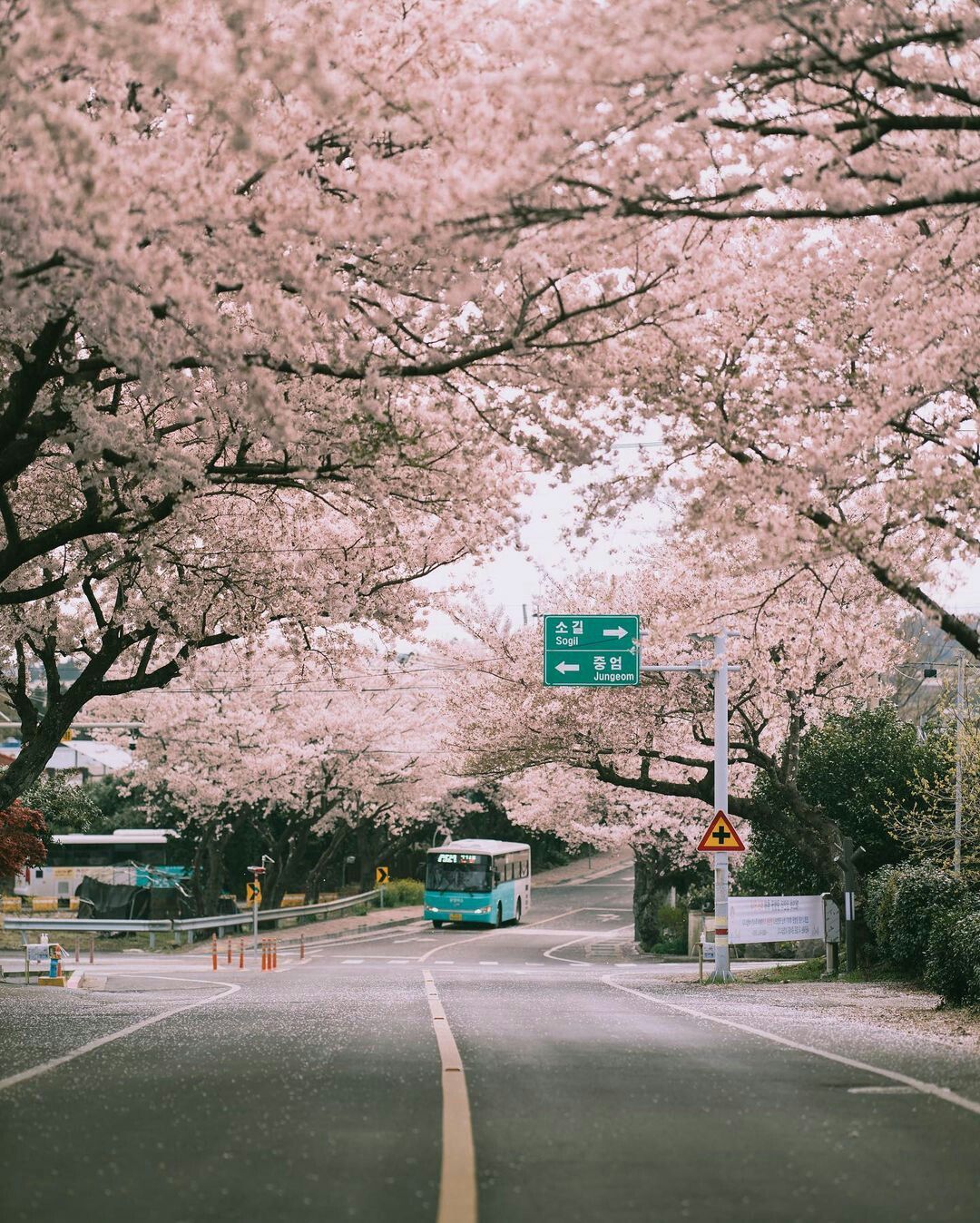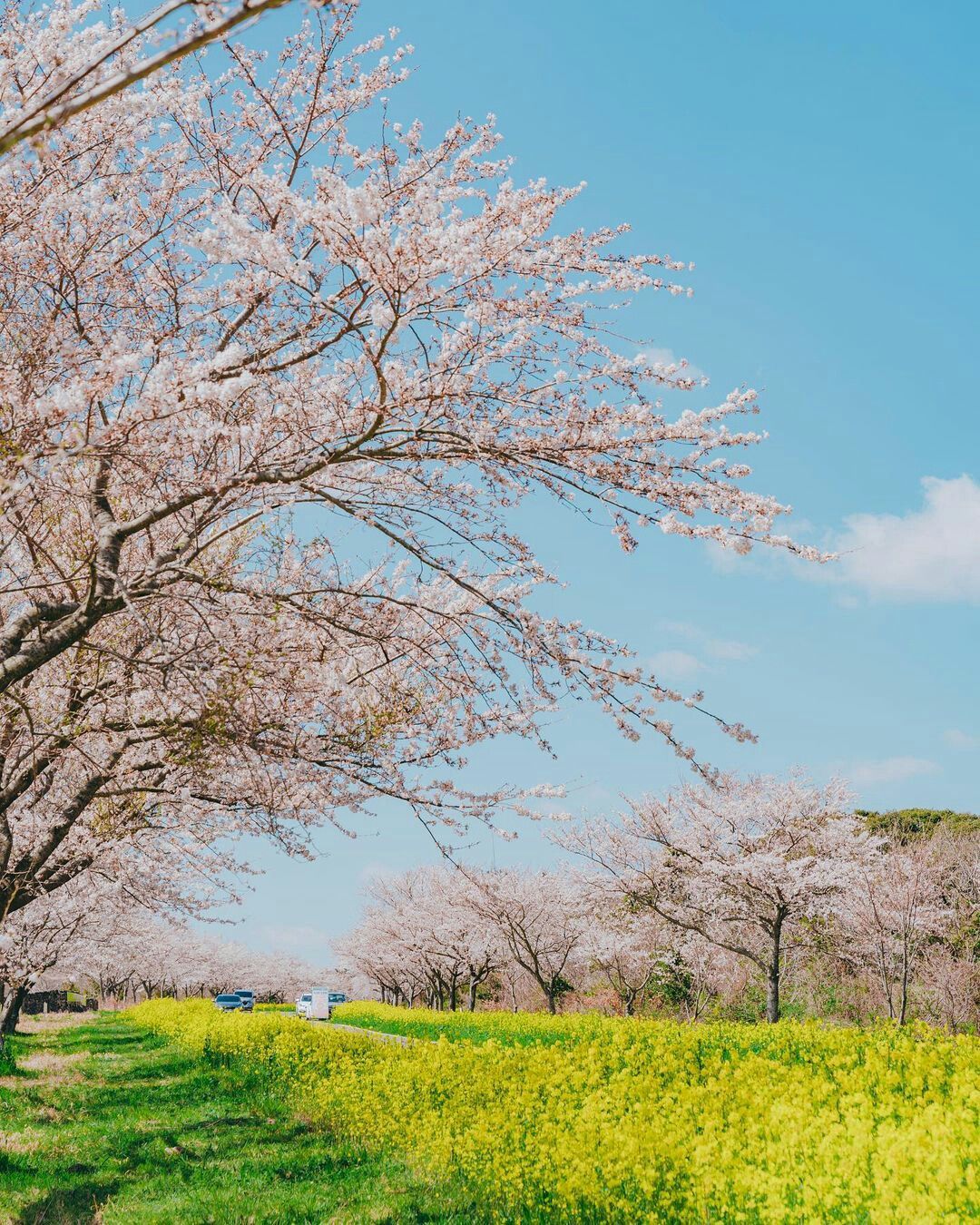 차들이 힘차게 달리고 벚꽃 행렬이 끝없이 이어집니다. 드라이브 코스로도 좋기 때문에 벚꽃비가 내리는 시기에 방문하기에 매우 아름다운 곳입니다.
